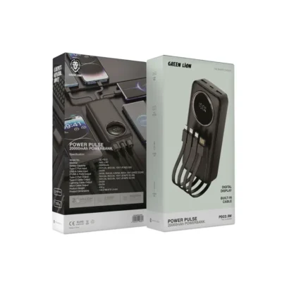 پاوربانک 20000 هزار 22.5 وات به همراه کابل متصل گرین لاین مدل Green Lion Power Pulse 20000mAh Power Bank GNPWRPS20KBK