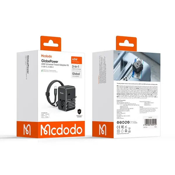 آداپتور مک دودو مدل CP-3260 یک شارژر دیواری چندمنظوره با توان 25 وات است که با طراحی جمعوجور، تبدیل پریز جهانی و کابل تایپسی داخلی، گزینهای مناسب برای کاربران مسافرتی و روزمره محسوب میشود. این محصول با پشتیبانی از شارژ سریع و قابلیت اتصال به انواع پریزهای بینالمللی، همراهی مطمئن برای شارژ ایمن و سریع دستگاههای دیجیتال در هر مکان است.
