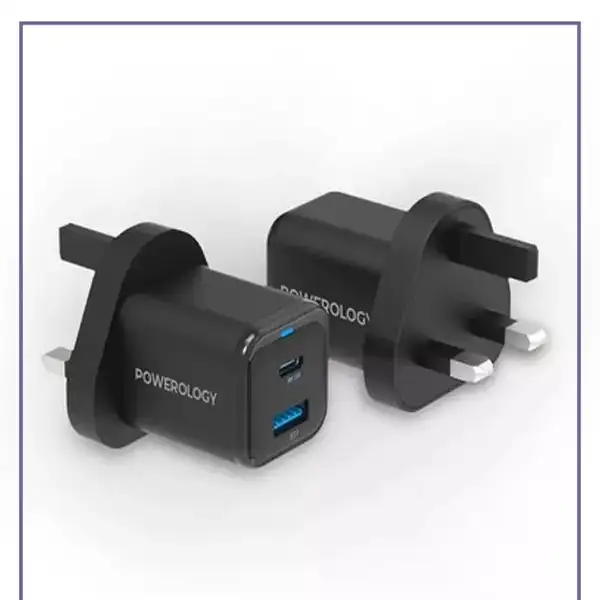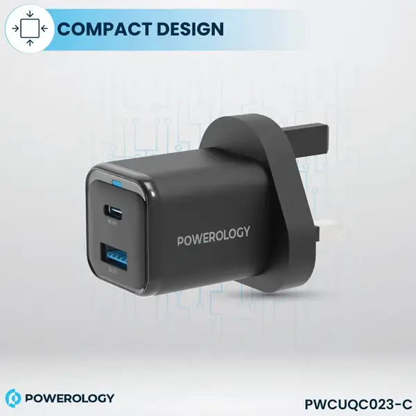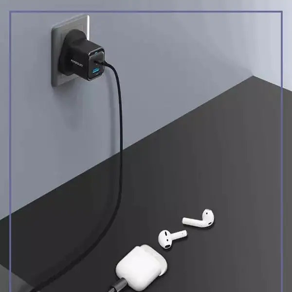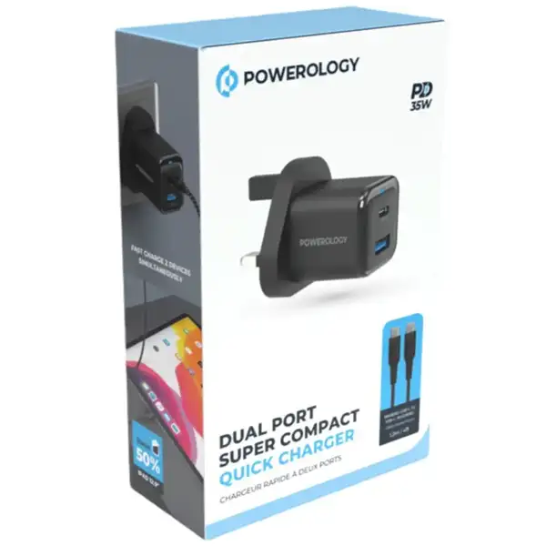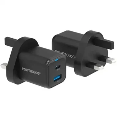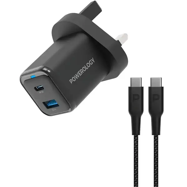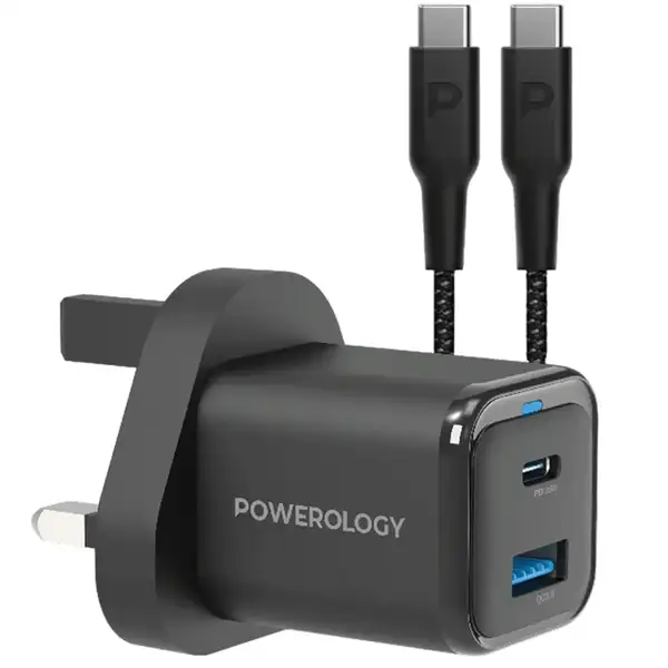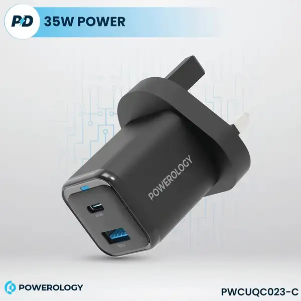 آداپتور شارژ 2 پورت 35 وات با کابل دو سر تایپ سی پاورولوژی مدل Powerology PWCUQC023-C