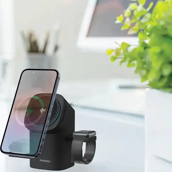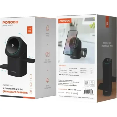 استند شارژر وایرلس پرودو مدل PORODO Auto Rotate & Slide Qi2 FWC043 یک شارژر چندمنظوره و هوشمند است که با طراحی مدرن و قابلیت چرخش و اسلاید خودکار، امکان شارژ همزمان گوشی، ایرپاد و ساعت هوشمند را فراهم میکند. این محصول با پشتیبانی از فناوری Qi2 و MagSafe، شارژ سریع و پایدار را برای دستگاههای سازگار ارائه میدهد و انتخابی عالی برای کاربران مدرن محسوب میشود.