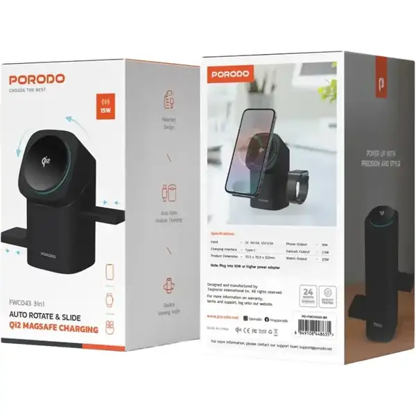 استند شارژر وایرلس پرودو Porodo Auto Rotate & Slide Qi2 FWC043