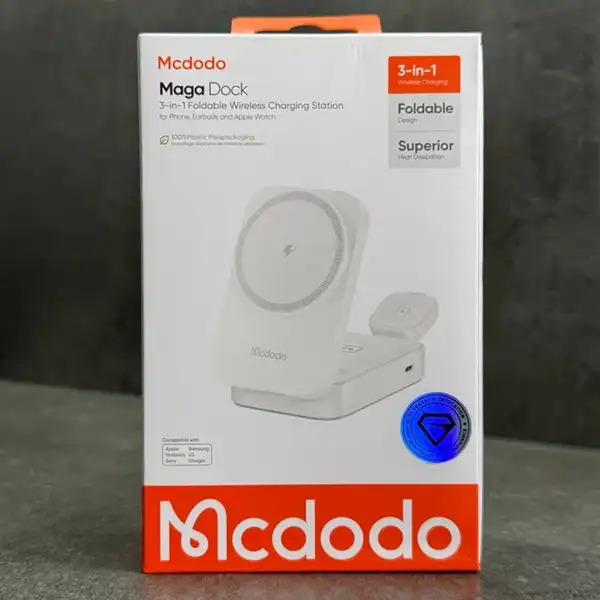 استند شارژر وایرلس مکدودو مدل CH-5090 یک پایه شارژ چندمنظوره با طراحی تاشو و توان ۱۵ وات است که امکان شارژ همزمان گوشی، ایرپاد و اپلواچ را فراهم میکند. این محصول با ساختار مغناطیسی، استاندارد Qi، و قابلیت تنظیم زاویه، انتخابی مناسب برای کاربران اپل و دستگاههای سازگار با شارژ بیسیم است. طراحی جمعوجور و قابلیت حمل آسان آن، استفاده در خانه، محل کار یا سفر را بسیار راحت میسازد.