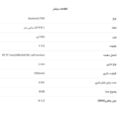 - باتری 1500 میلیآمپر ساعت با شارژدهی مناسب برای چند ساعت پخش موسیقی