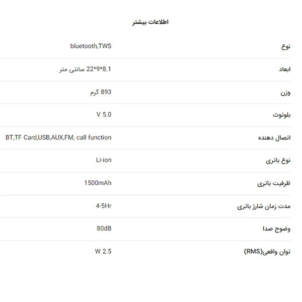 - پشتیبانی از ورودیهای متنوع شامل AUX، USB و کارت TF