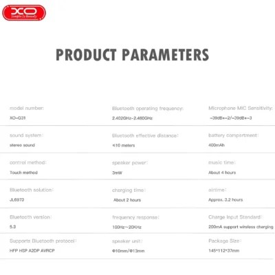 ایرپاد بی‌سیم ایکس او XO G31 TWS Bluetooth Earbuds