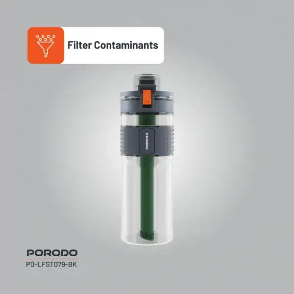 بطری آب تصفیه ۲ مرحلهای پرودو مدل PORODO 2-STAGE FILTRATION WATER BOTTLE یک همراه کاربردی و سبک برای سفر، ورزش و استفاده روزانه است. این محصول با طراحی مدرن و فیلتر دو مرحلهای، آب آشامیدنی سالم و بدون طعم ناخوشایند را در هر شرایطی فراهم میکند.