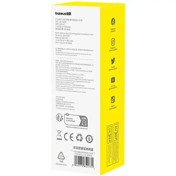 تایمر زنگ دار شمارش معکوس مغناطیسی بیسوس مدلBaseus MULTI-PERIOD TIMER L60448003111-00