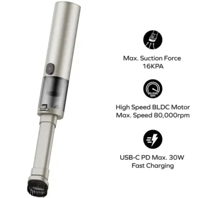 Momax R-09 (مدل RO9E) با طراحی مدرن و عملکرد قدرتمند، گزینهای عالی برای نظافت روزمره در فضاهای کوچک است. این دستگاه با موتور پرسرعت، دو حالت مکش، شارژ سریع و نمایشگر دیجیتال، تجربهای راحت و مؤثر از تمیزکاری را فراهم میکند. مناسب برای استفاده در خودرو، میز کار، آشپزخانه و گوشههای سختدسترس.