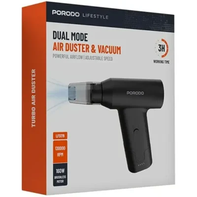 جت فن جارو شارژی دمنده و مکنده پرودو مدل PORODO Dual Mode Air Duster & Vacuum PDLFST179 یک دستگاه چندمنظوره و قدرتمند است که با ترکیب قابلیت دمنده و مکنده، راهحلی کامل برای تمیزکاری تجهیزات الکترونیکی، سطوح حساس و محیطهای کوچک ارائه میدهد. طراحی سبک، باتری پرظرفیت و موتور پرسرعت این محصول را به انتخابی مناسب برای کاربران حرفهای و خانگی تبدیل کرده است.