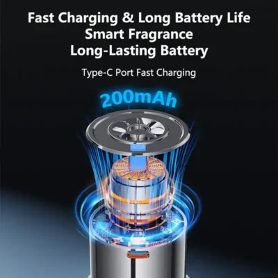 خوشبوکننده هوشمند و اتوماتیک خودرو است که با طراحی مدرن، عملکرد بیصدا و قابلیت شارژ Type‑C، تجربهای متفاوت از خوشبو کردن فضای داخل خودرو ارائه میدهد.