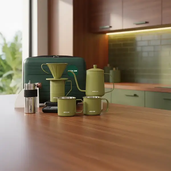 ست قهوهساز Green Lion V-60 Pro یک مجموعه کامل و حرفهای برای تهیه قهوه دمی (Pour Over) است. این محصول با طراحی مدرن و رنگ سبز جذاب، تجربهای متفاوت از دمآوری قهوه را برای علاقهمندان به نوشیدنیهای تخصصی فراهم میکند. ترکیب تجهیزات باکیفیت و طراحی ارگونومیک، این ست را به انتخابی عالی برای خانه، دفتر کار و حتی کافههای کوچک تبدیل کرده است.