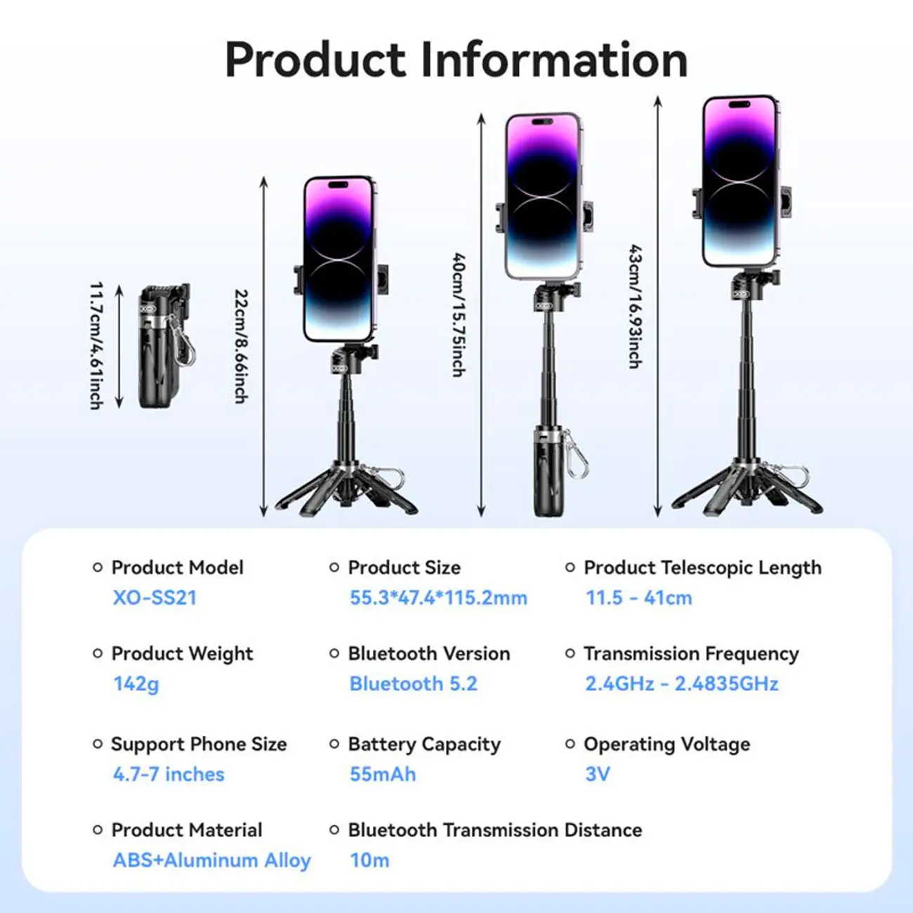 XO SELFIE STICK & TRIPOD – SS21 (Bluetooth / Foldable / 360° Rotation)