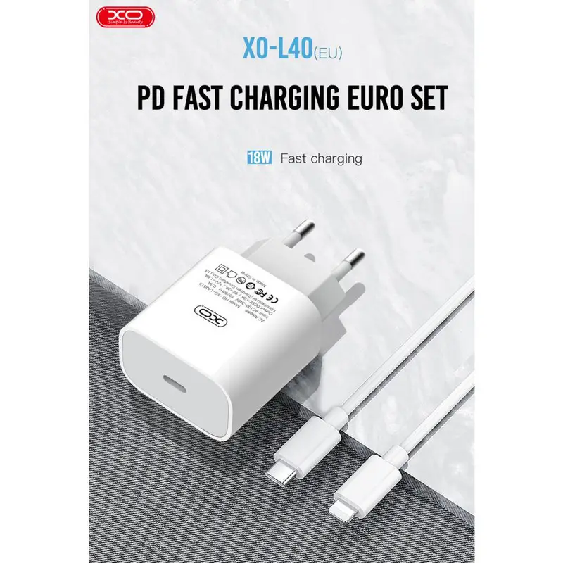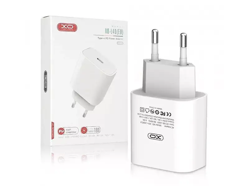 شارژر دیواری ایکس او XO مدل L40 یک آداپتور تکپورت Type‑C با توان خروجی 18 وات و فناوری Power Delivery (PD 3.0) است.