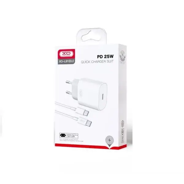 شارژر دیواری ایکس او XO مدل L91EU یک آداپتور سریع 25 وات با پورت USB‑C و کابل همراه است که از فناوریهای Power Delivery 3.0 و Quick Charge 4.0+ پشتیبانی میکند.