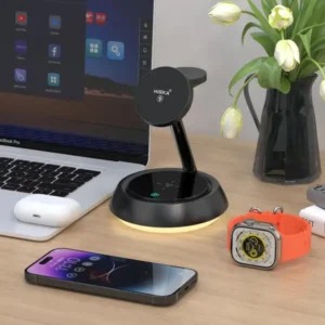 شارژر بیسیم HISKA مدل HR-13 با توان شارژ سریع، طراحی مغناطیسی و قابلیت شارژ همزمان سه دستگاه، گزینهای عالی برای کسانیست که به دنبال یک شارژر رومیزی زیبا، کاربردی و همهکاره هستند. این محصول با ترکیب راحتی، کارایی و طراحی مدرن، تجربهای بیدردسر از شارژ روزانه را فراهم میکند.