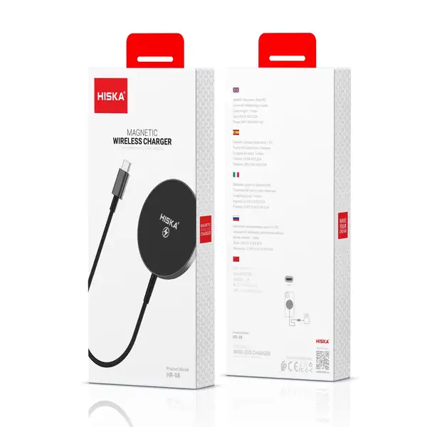 شارژر HR-08 از برند HISKA یک شارژر بیسیم با طراحی آهنربایی و توان خروجی ۱۵ وات است که با فناوری شارژ سریع و ظاهر مدرن، تجربهای راحت و سریع از شارژ دستگاههای هوشمند را فراهم میکند. این مدل با پشتیبانی از استاندارد Qi، مناسب برای انواع گوشیهای آیفون، سامسونگ، شیائومی و دیگر برندهای مجهز به شارژ بیسیم است.