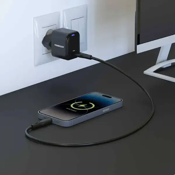 شارژر دیواری تایپ سی 20 وات پاورولوژی مدل Powerology Ultra-Compact GaN PD PWCUQC015