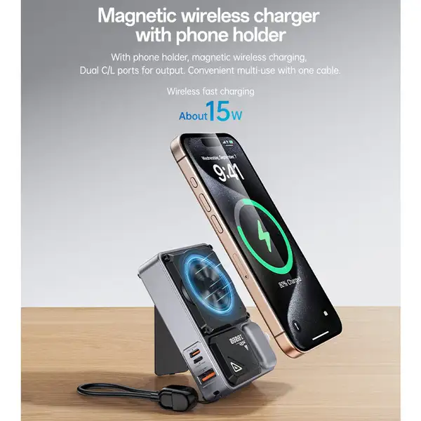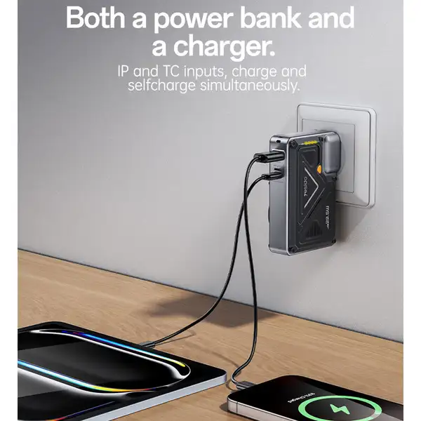 - ترکیب دو کاره: شارژر دیواری + پاوربانک بیسیم در یک دستگاه