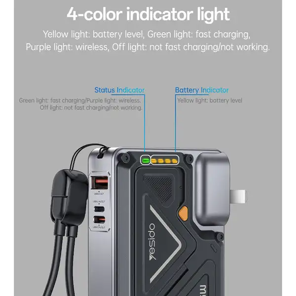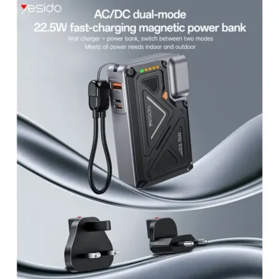 Yesido YP89 PD یک شارژر دیواری و پاوربانک بیسیم ترکیبی با ظرفیت 10000mAh و توان 22.5 وات است که با پشتیبانی از شارژ سریع، شارژ بیسیم 15 وات و چندین خروجی، انتخابی هوشمندانه برای کاربرانی است که به دنبال یک دستگاه چندمنظوره، سبک و قابل اعتماد هستند. این محصول با طراحی مدرن و ایمنی بالا، گزینهای ایدهآل برای استفاده روزمره و سفر محسوب میشود.