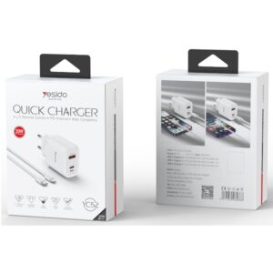 شارژر دیواری 20 وات به همراه کابل لایتنینگ یسیدو مدل Yesido YC52