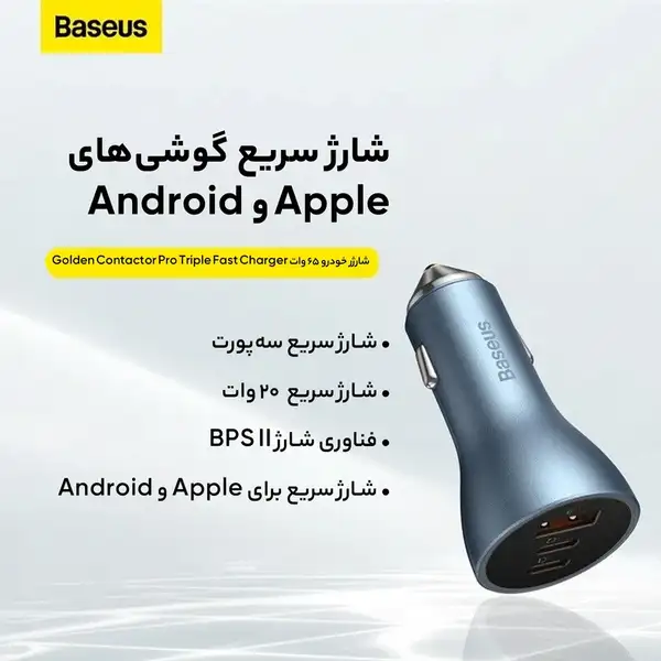 شارژر فندکی 65 وات سه پورت بیسوس مدل Baseus C00035202841
