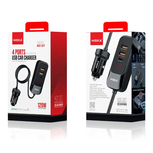 شارژر فندکی 120 ولت 4 پورت هیسکا مدل Hiska HCC-327