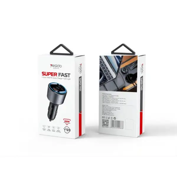 شارژر فندکی 200 وات یسیدو مدل Yesido Y59 Dual Type‑C Ports & QC18W Fast Charging Multi‑Protection