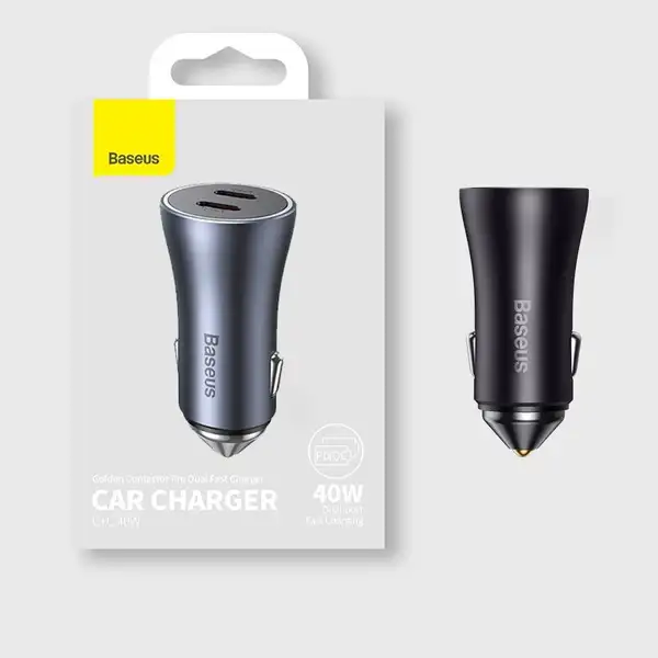 شارژر فندکی فست شارژ 40 وات بیسوس مدل Baseus Golden Contactor Pro Type-C/USB TZCCJD-0G