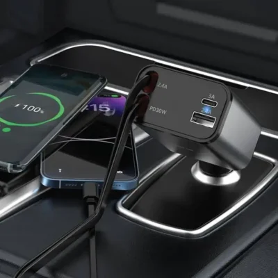 50 وات امکان شارژ سریع و ایمن دستگاههای مختلف را فراهم میکند. این محصول با طراحی جمعوجور و بدنه مقاوم، انتخابی عالی برای رانندگان و کاربرانی است که به شارژ سریع و مطمئن در سفر نیاز دارند.