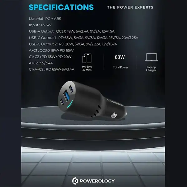 شارژر فندکی 85 وات پاورولوژی مدل Powerology PCCSR014