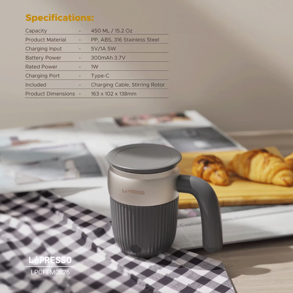 ماگ همزن‌دار مغناطیسی 450 میلی‌لیتر لپرسو Lepresso Auto Magnetic Stirring Mug 450mL LP026 / LPCFFMOO26