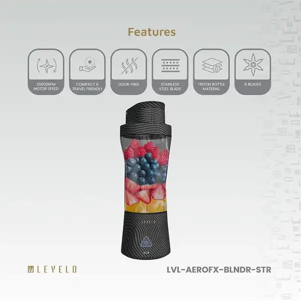 مخلوط کن و شیکر شارژی لولو مدل Levelo Portable Carbon Fiber Blender Aeroflex