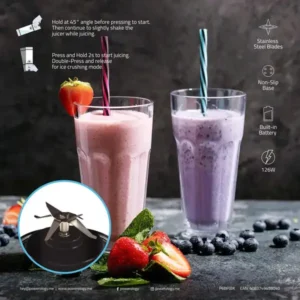 PN6BPJBK یک دستگاه کوچک، سبک و قدرتمند است که با طراحی مدرن و تیغههای استیل ضدزنگ، امکان تهیه اسموتی، شیک، نوشیدنیهای انرژیزا و حتی خرد کردن یخ را در هر مکان فراهم میکند. این محصول برای استفاده روزانه، باشگاه، سفر و محل کار طراحی شده است.