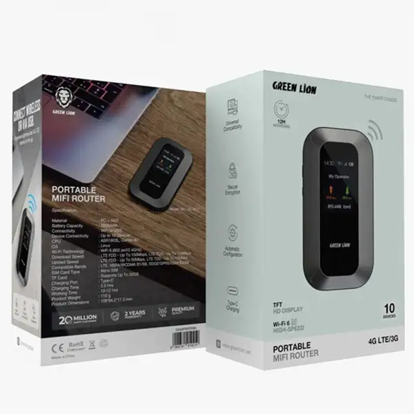 Green Lion Portable MiFi Router 4G با سرعت بالا، باتری بادوام و طراحی قابل حمل، یک انتخاب عالی برای کسانی است که به دنبال