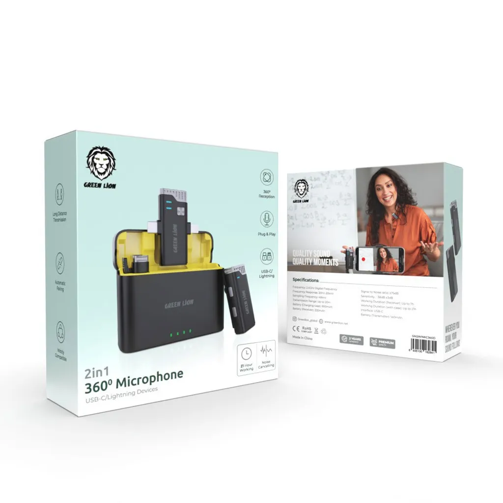میکروفون یقهای Green Lion GN3in1MIC360D با دو فرستنده، کیفیت صدای HD و طراحی سبک، انتخابی کامل برای کسانی است که به دنبال یک میکروفون حرفهای و چندمنظوره برای تولید محتوا، مصاحبه و استفاده روزمره هستند.