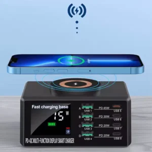 هاب شارژ چند راهی بی سیم پرودو مدل PD-MFMGFC یک شارژر چندکاره و قدرتمند است که امکان شارژ همزمان چندین دستگاه را فراهم میکند. این محصول با توان کلی 110 وات و پشتیبانی از پورتهای USB-C، USB-A و قابلیت شارژ بیسیم، انتخابی مناسب برای کسانی است که به دنبال سرعت بالا و انعطافپذیری در شارژ هستند. ویژگی مگسیف اتصال ایمن را تضمین میکند و دوشاخه 3 پین UK همراه با کابل 1.2 متری، راحتی بیشتری در استفاده روزانه ایجاد میکند.