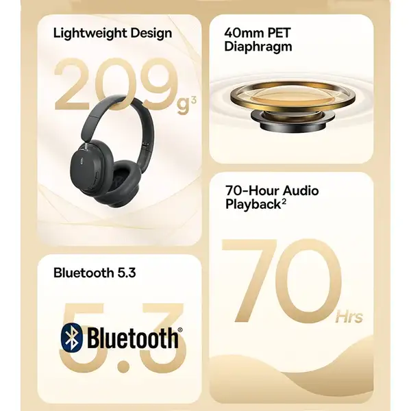 Baseus Bowie D05 یک هدفون بیسیم دورگوشی با طراحی تاشو، صدای فراگیر و باتری قدرتمند است که برای کاربران حرفهای، علاقهمندان به موسیقی و گیمرها طراحی شده است. این مدل با بهرهگیری از فناوری صوتی اختصاصی Baseus، تأخیر پایین و اتصال پایدار، تجربهای دقیق و همهجانبه را در اختیار کاربر قرار میدهد.