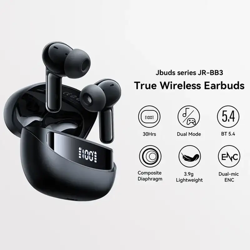هندزفری بلوتوثی «JOYROOM JR-BB3» از سری Jbuds، یک ایرباد بیسیم حرفهای با طراحی ارگونومیک، کیفیت صدای بالا و امکانات پیشرفته برای تماس، موسیقی و بازی است. این مدل با بلوتوث نسخه 5.4، تأخیر بسیار پایین، دو حالت صدای سفارشی و مقاومت IPX5 در برابر رطوبت، انتخابی ایدهآل برای کاربران روزمره، ورزشکاران و گیمرها محسوب میشود. کیس شارژ مجهز به نمایشگر LED و طراحی جیبی، حمل و استفاده از آن را در هر شرایطی آسان میسازد.