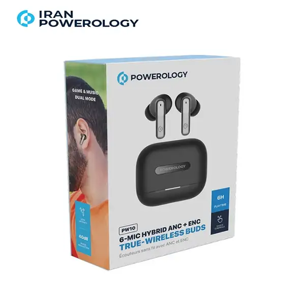 هدفون بی سیم 6 میکروفون هیبرید پاورولوژی مدل Powerology ANC + ENC Earbuds PWLAU010