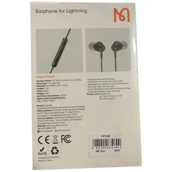 هندزفری سيم دار لایتنینگ مک دودو مدل Mcdodo HP-348