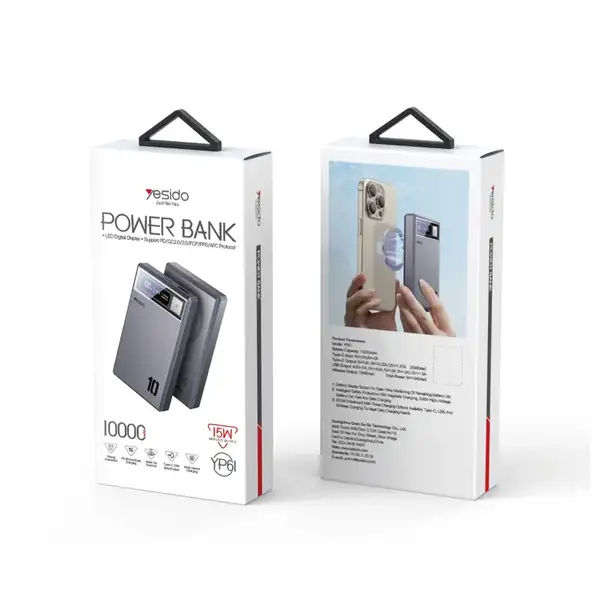 پاوربانک فست شارژ 10000 هزار 15 وات مگ سیف یسیدو مدل YESIDO YP61