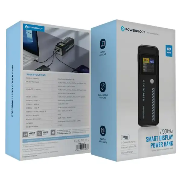 پاوربانک هوشمند 27000 میلی آمپر 140 وات پاورولوژی Powerology PPBCHA83