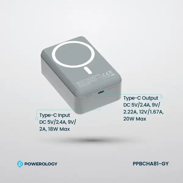 پاوربانک وایرلس 30000 هزار 20 وات پاورولوژی مدل Powerology PPBCHA81-GY
