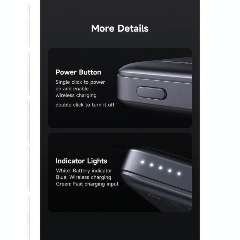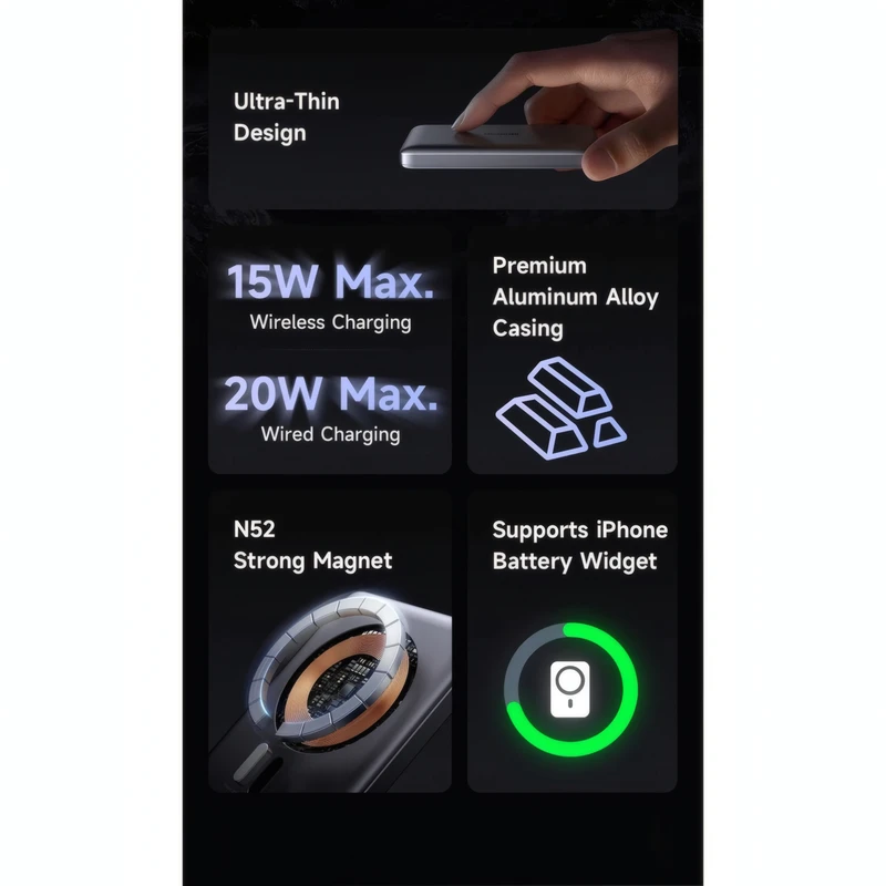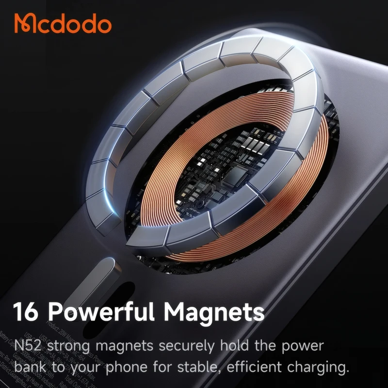 پاوربانک وایرلس مکدودو مدل MC-464 یک منبع انرژی قابلحمل با طراحی باریک و عملکرد پیشرفته است که برای کاربران گوشیهای هوشمند بهویژه آیفونهای مجهز به فناوری MagSafe طراحی شده است. این محصول با قابلیت شارژ سریع بیسیم و اتصال مغناطیسی، تجربهای روان و بدون نیاز به کابل را فراهم میکند. طراحی سبک، بدنه مقاوم و توان بالا، آن را به گزینهای مناسب برای استفاده روزمره، سفر و فعالیتهای کاری تبدیل کرده است.