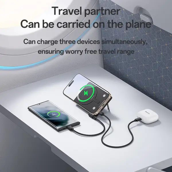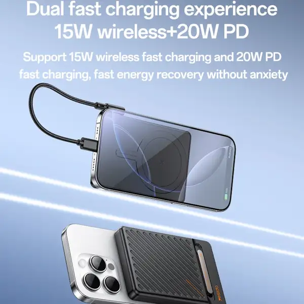 • خروجی‌ها: USB‑A + USB‑C + شارژ بی‌سیم مغناطیسی