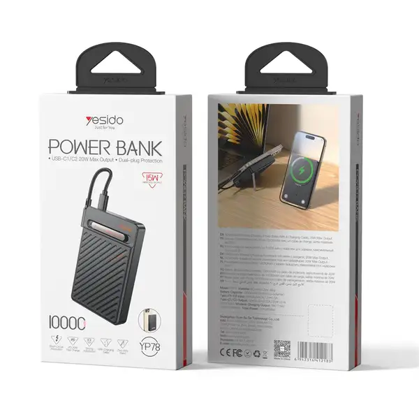 پاوربانک 10000 هزار با شارژ بی‌سیم مغناطیسی یسیدو مدل Yesido YP78