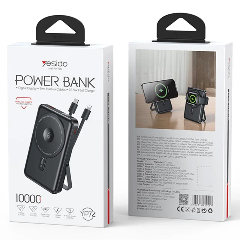 پاوربانک بیسیم فست شارژ یسیدو مدل Yesido YP72 PD 22.5W ظرفیت 10000 میلیآمپر