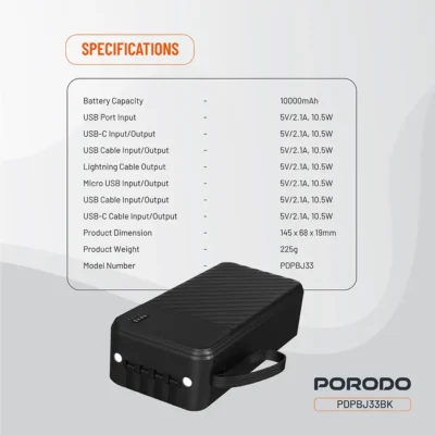 مدل Porodo Piano 10000mAh 10W (PDPBJ33BK)