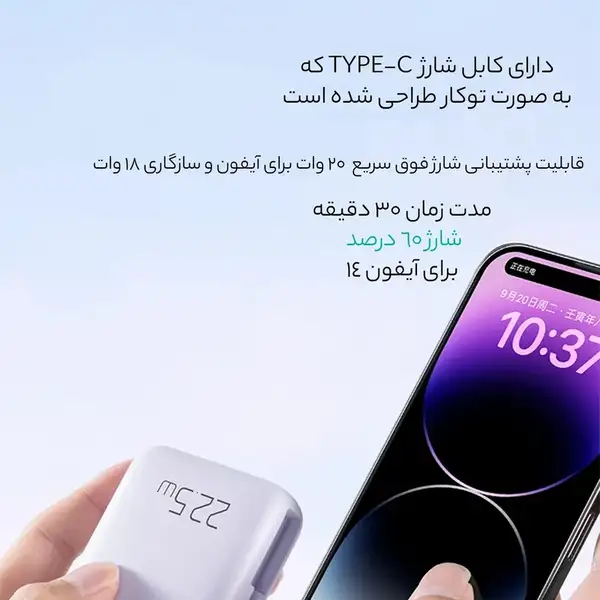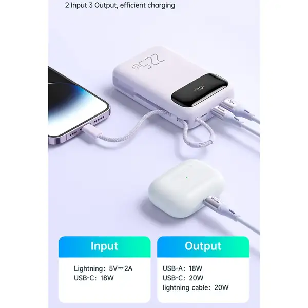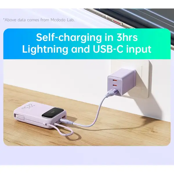 پاوربانک مکدودو مدل MC-325 با توان ۲۲.۵ وات، کابل داخلی لایتنینگ، طراحی هوشمندانه و ظرفیت مناسب، گزینهای کامل برای کاربران آیفون و کسانیست که به دنبال یک شارژر همراه سریع، سبک و چندمنظوره هستند.