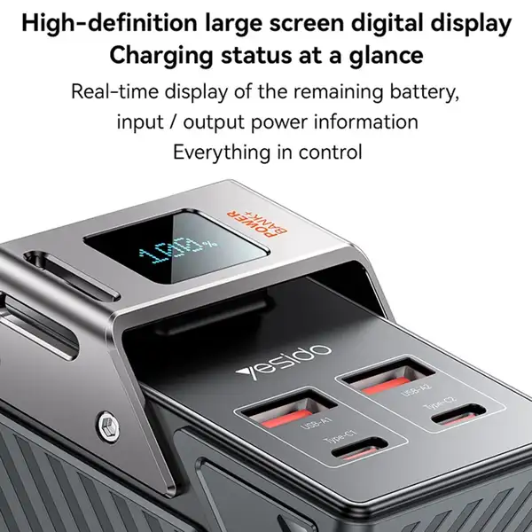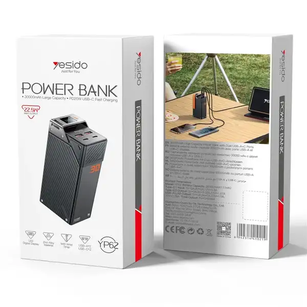 پاوربانک YESIDO YP62 با ظرفیت 30000 میلیآمپر ساعت، چهار پورت خروجی، شارژ سریع و نمایشگر دیجیتال، یک انتخاب هوشمندانه برای کاربرانی است که به دنبال شارژر قابل حمل قدرتمند و چندمنظوره هستند. این محصول با ترکیب ظرفیت بالا، فناوریهای پیشرفته و طراحی مقاوم، همراهی مطمئن برای سفر، محیط کاری و استفاده روزمره محسوب میشود.